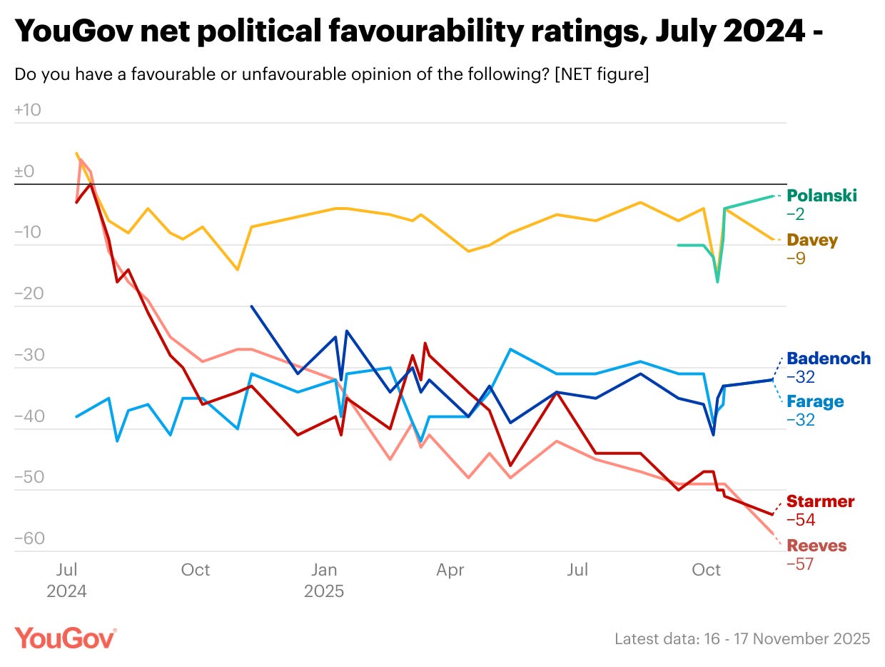 That whole situation again reminds me of polling we saw in the lead up to the 2024 election – you could find a pretty decent number of individual Conservative party policies which commanded at least moderate-to-good ratings with the public (including even national service). But did they make anyone really more likely to vote for Sunak and his party? Absolutely not. They were, to coin a term, cooked.